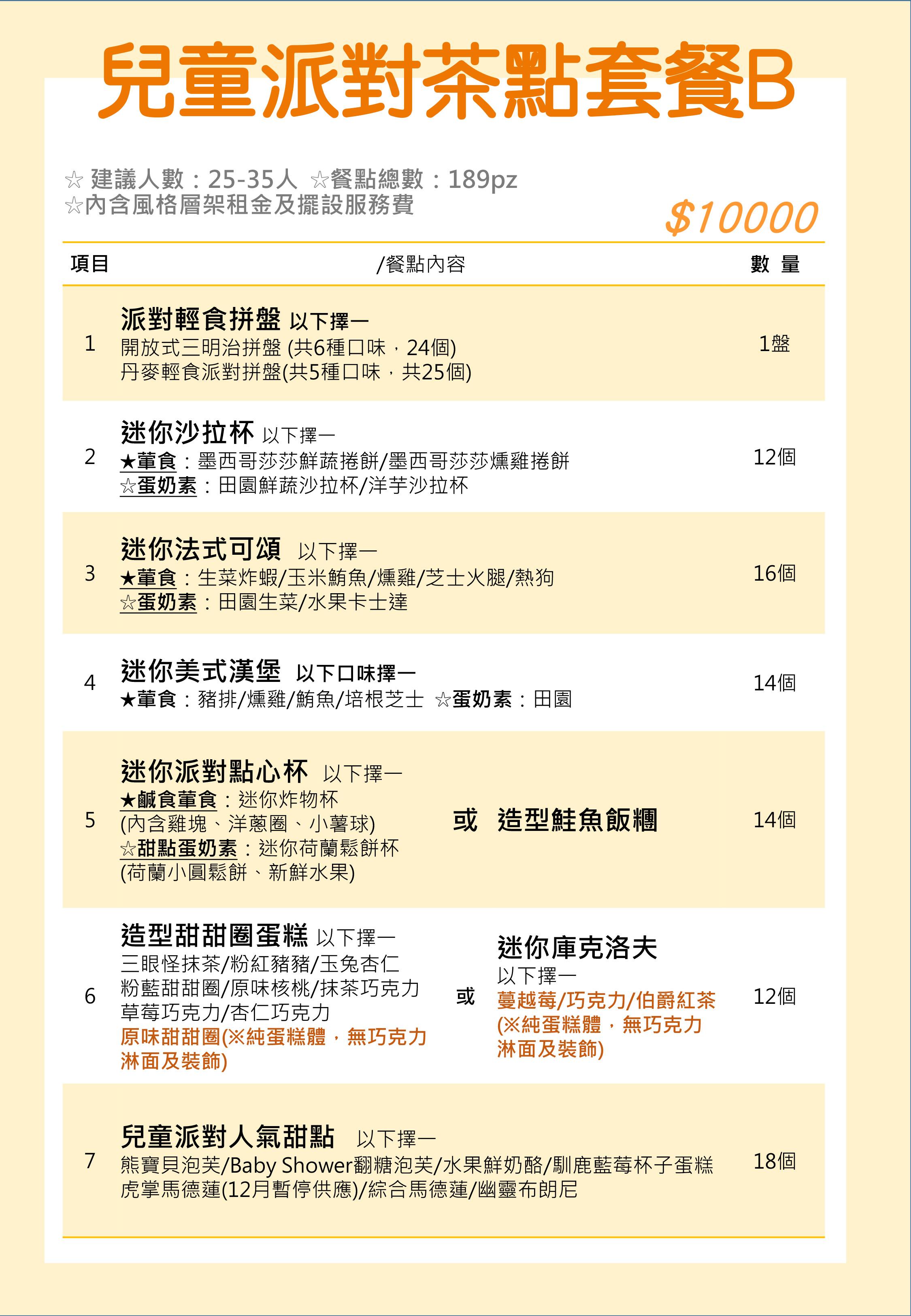 兒童派對茶會套餐B