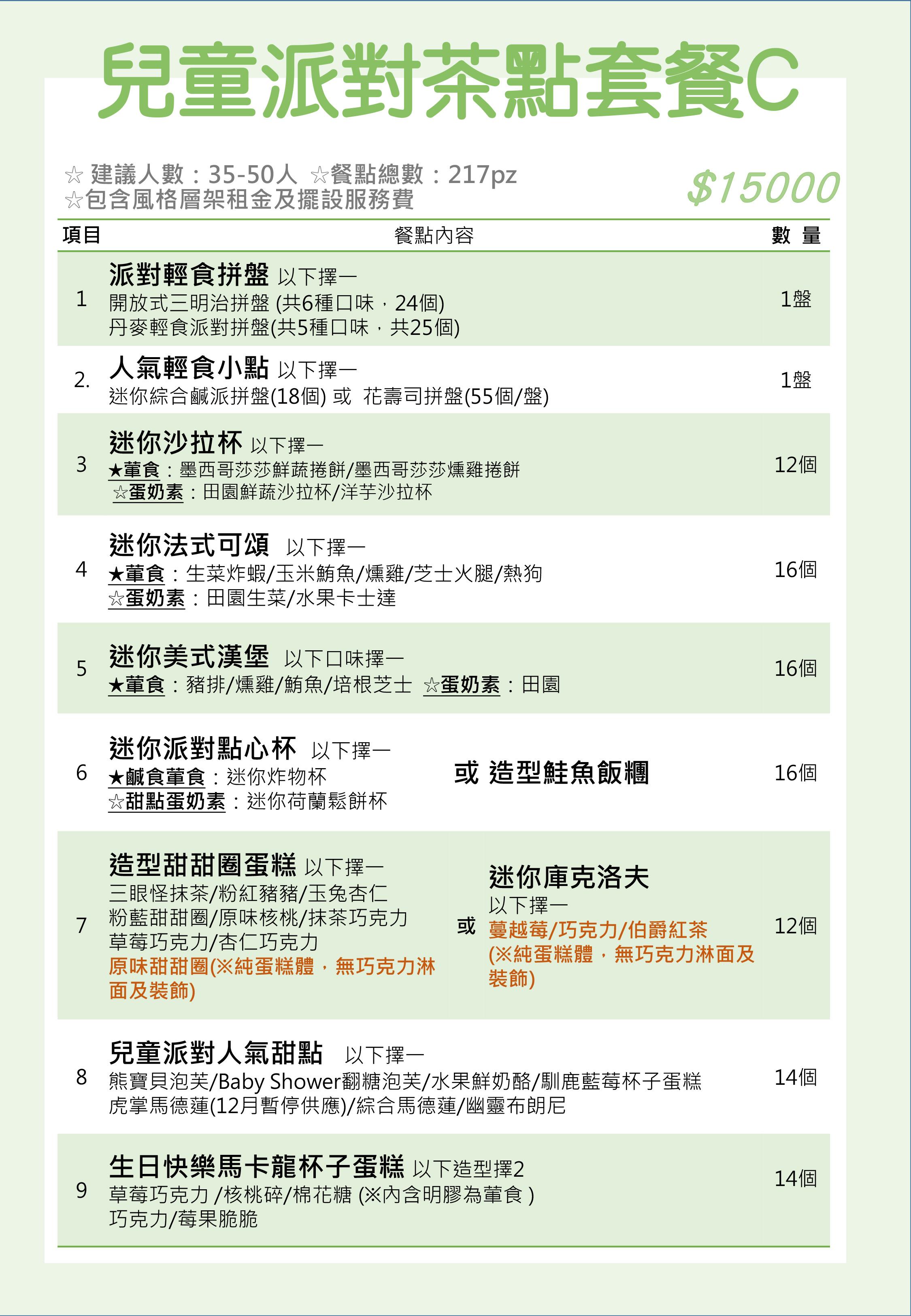 兒童派對茶會套餐C