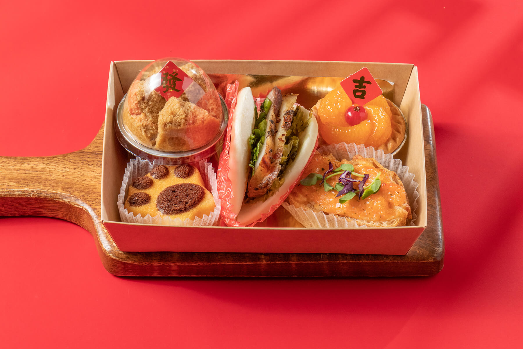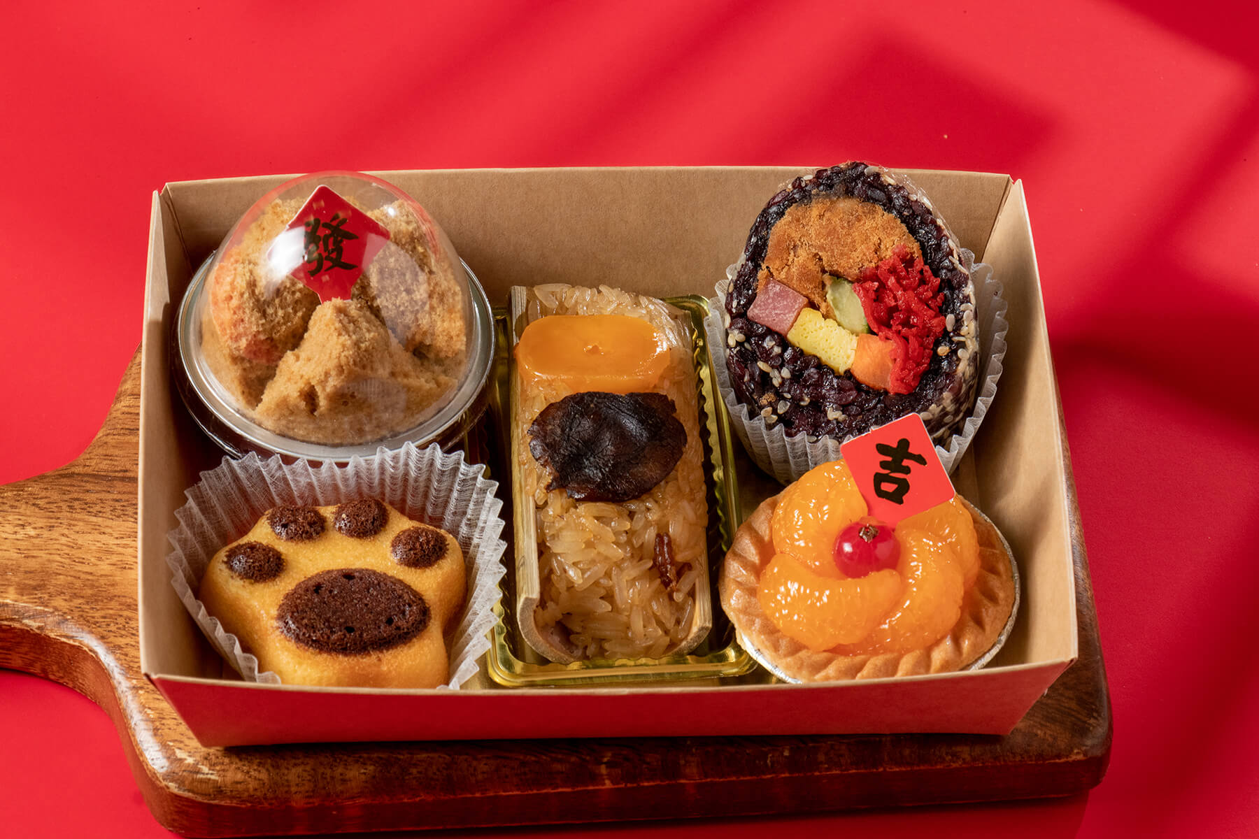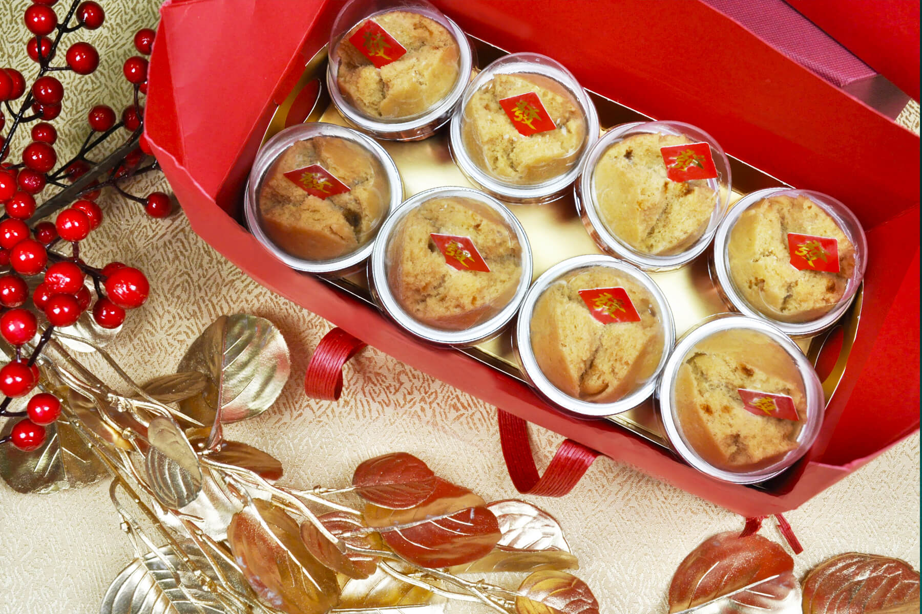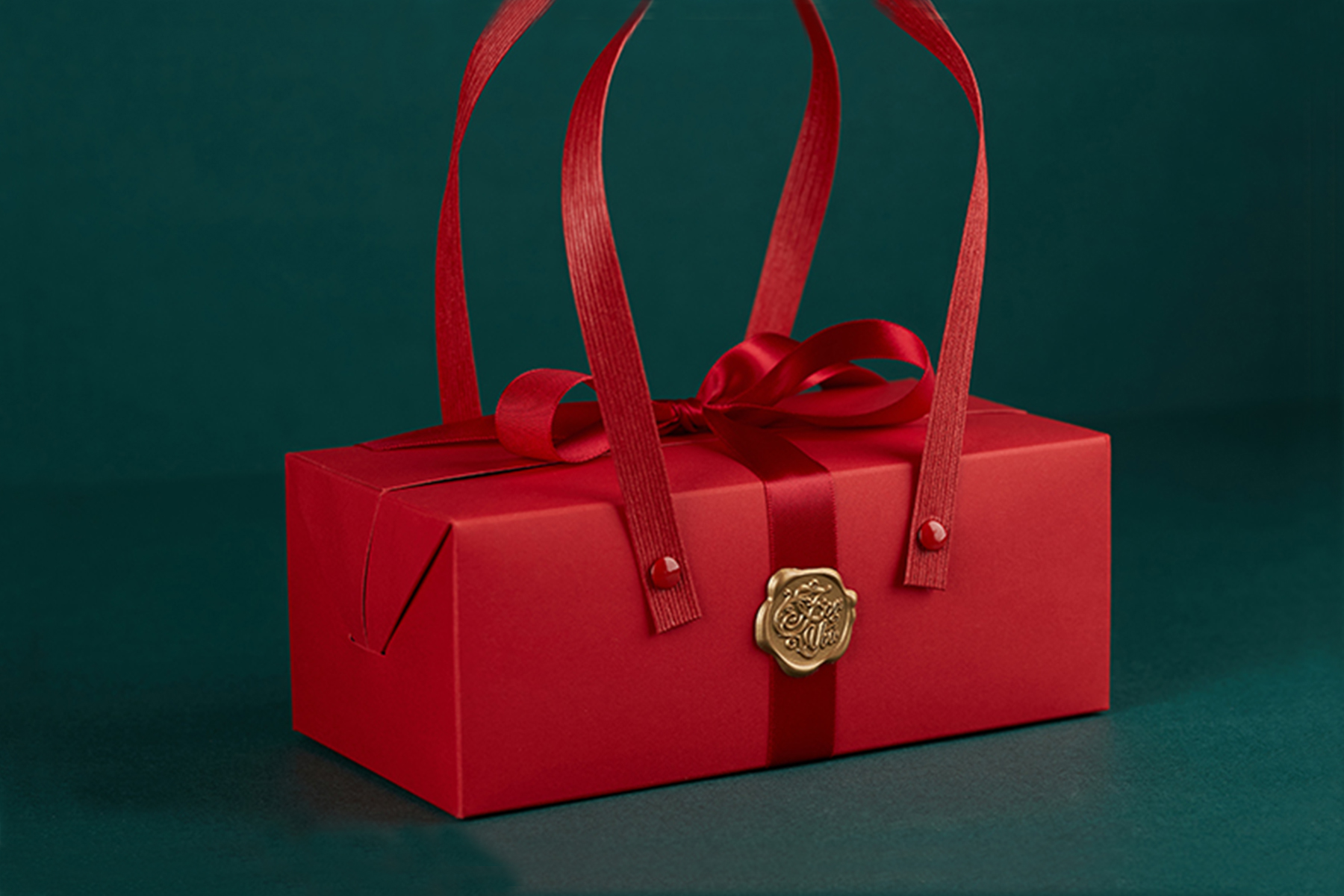 採用簡約時尚又有年節氣氛的紅色手提盒包裝,上方使用紅色緞帶加上蜂蠟貼紙裝飾,大方又喜氣!