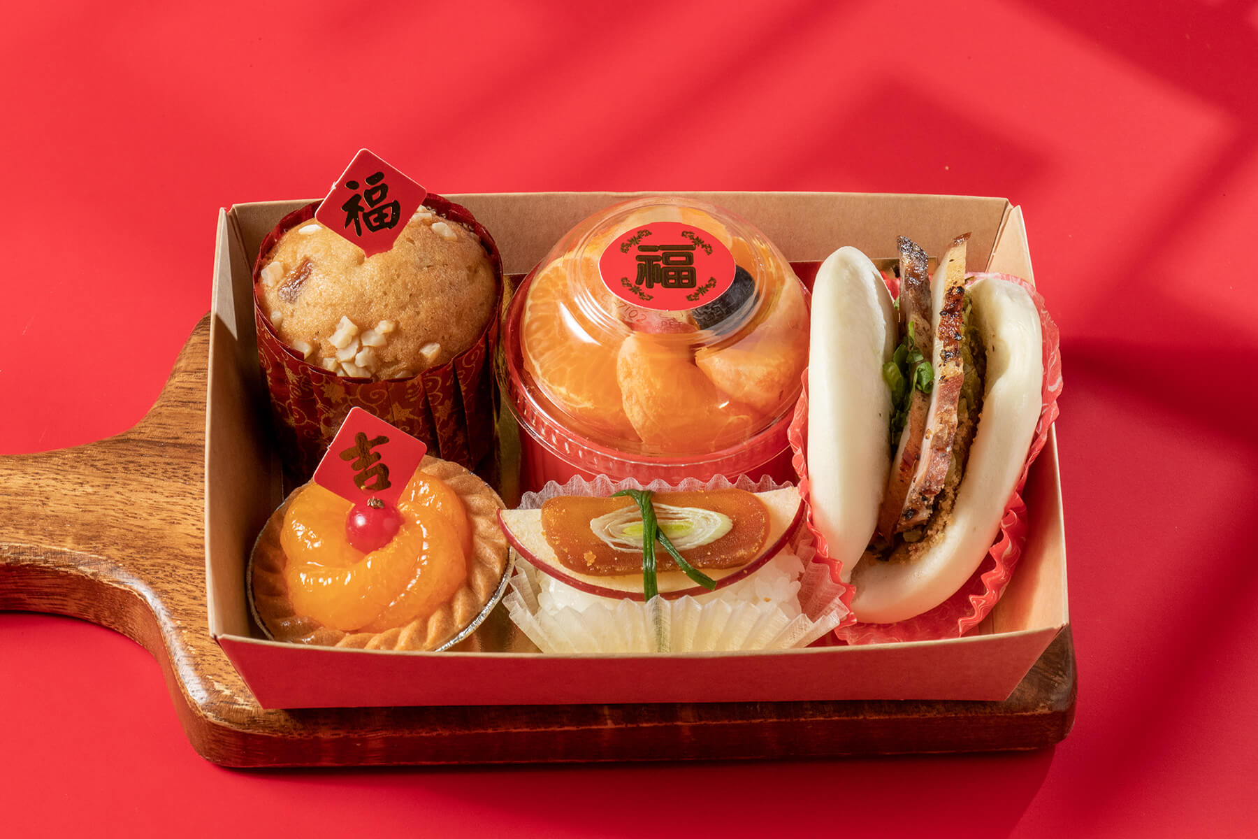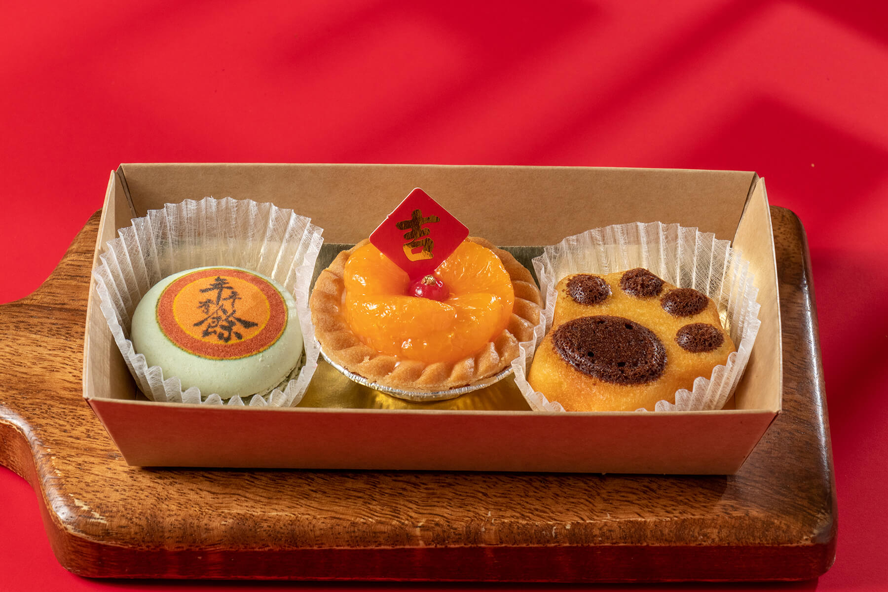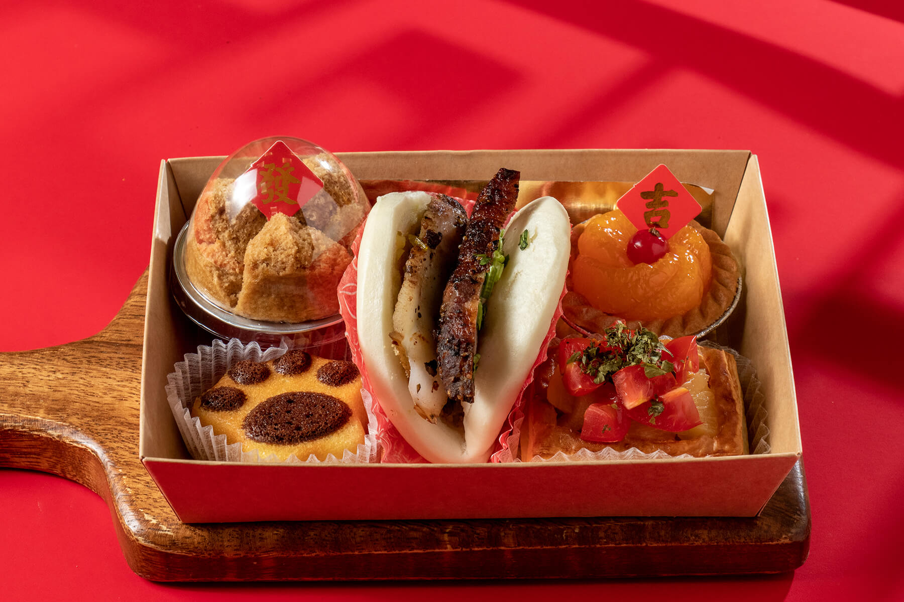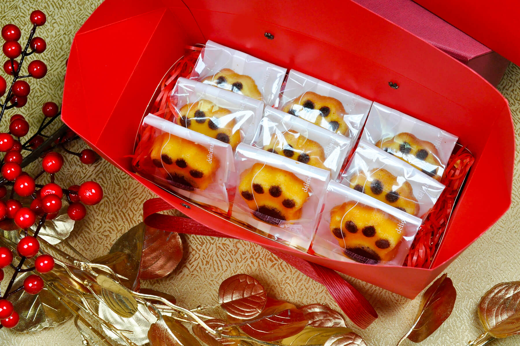 採用簡約時尚又有年節氣氛的紅色手提盒包裝,上方使用紅色緞帶加上蜂蠟貼紙裝飾,大方又喜氣!