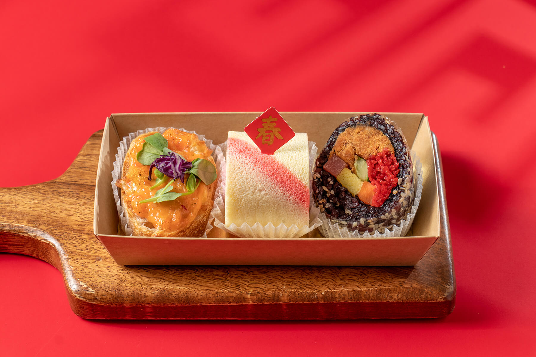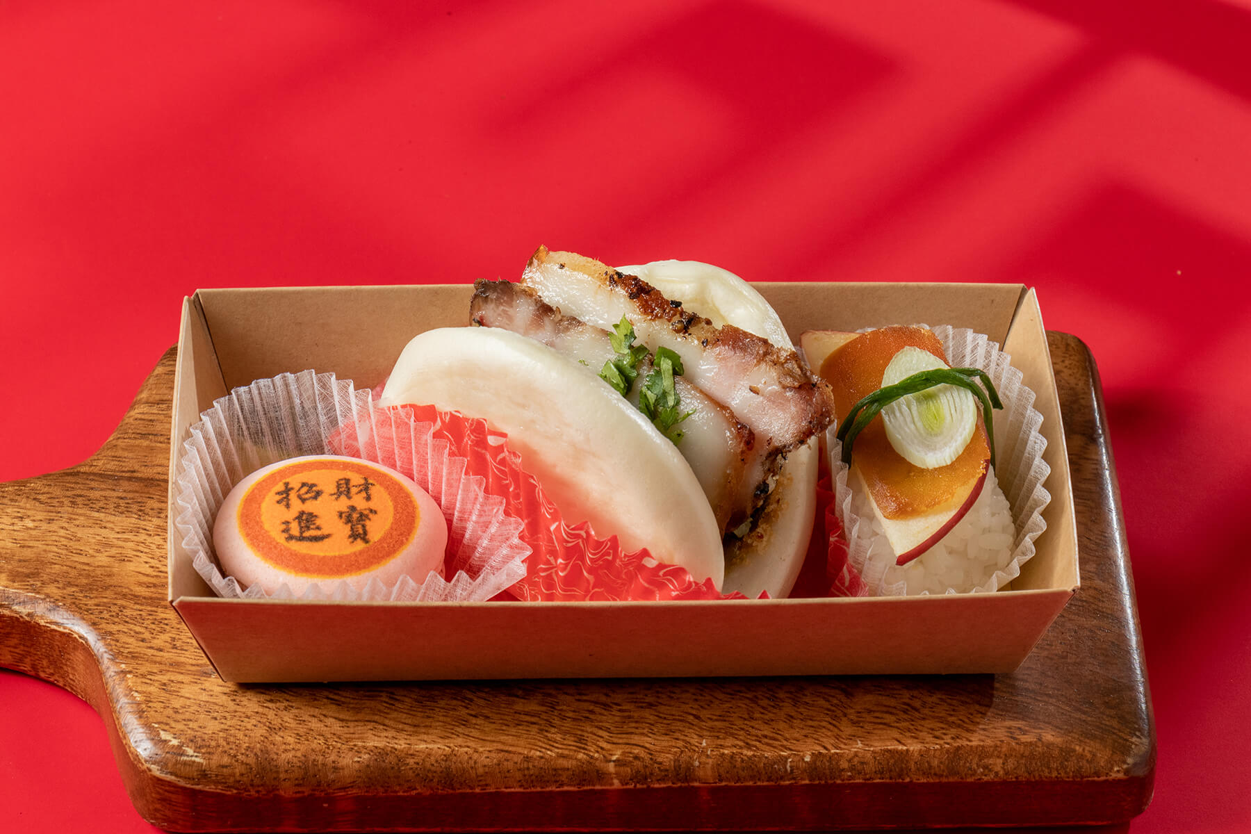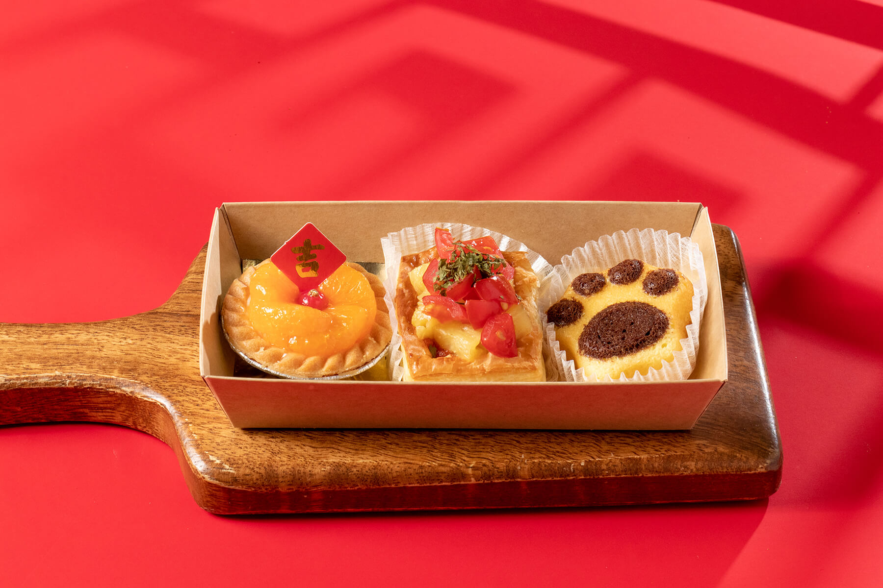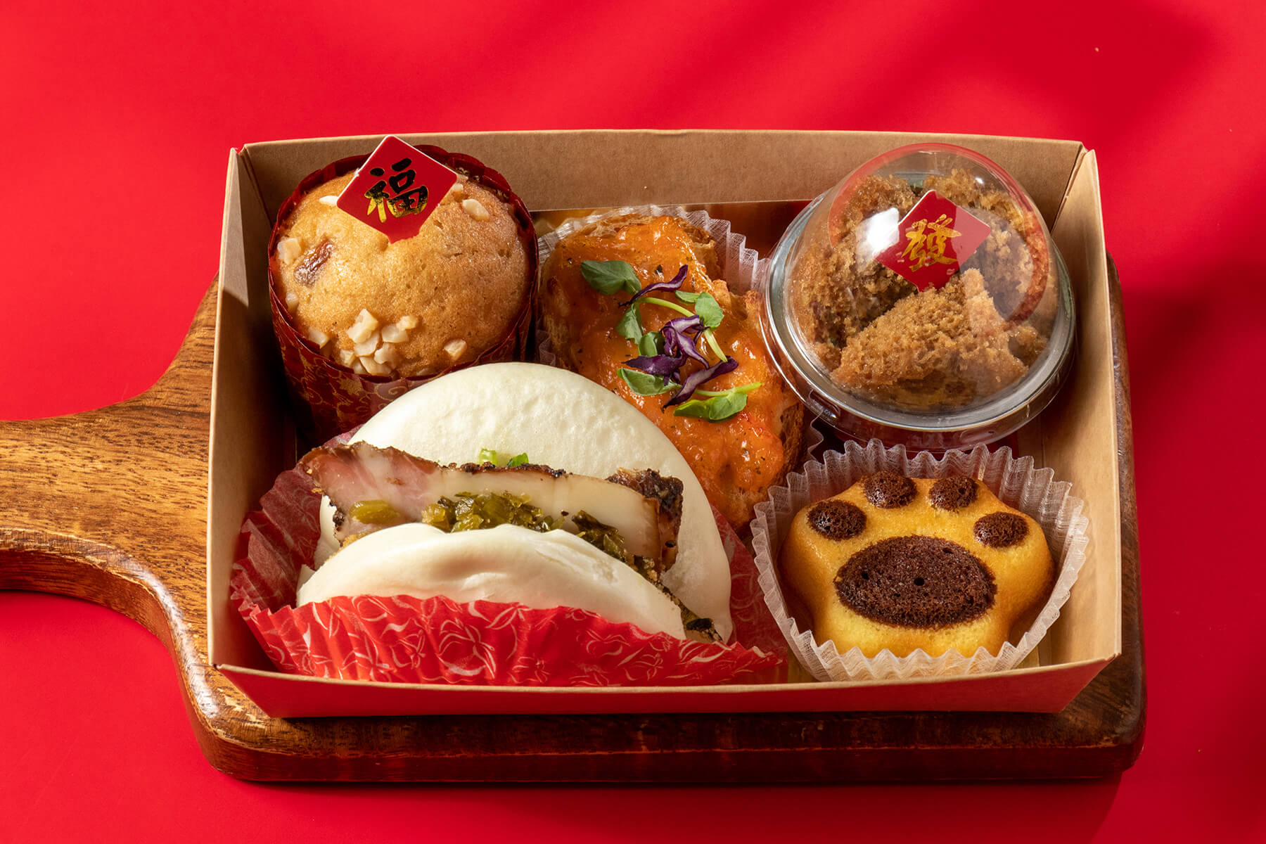 採用簡約時尚又有年節氣氛的紅色手提盒包裝,上方使用紅色緞帶加上蜂蠟貼紙裝飾,大方又喜氣!