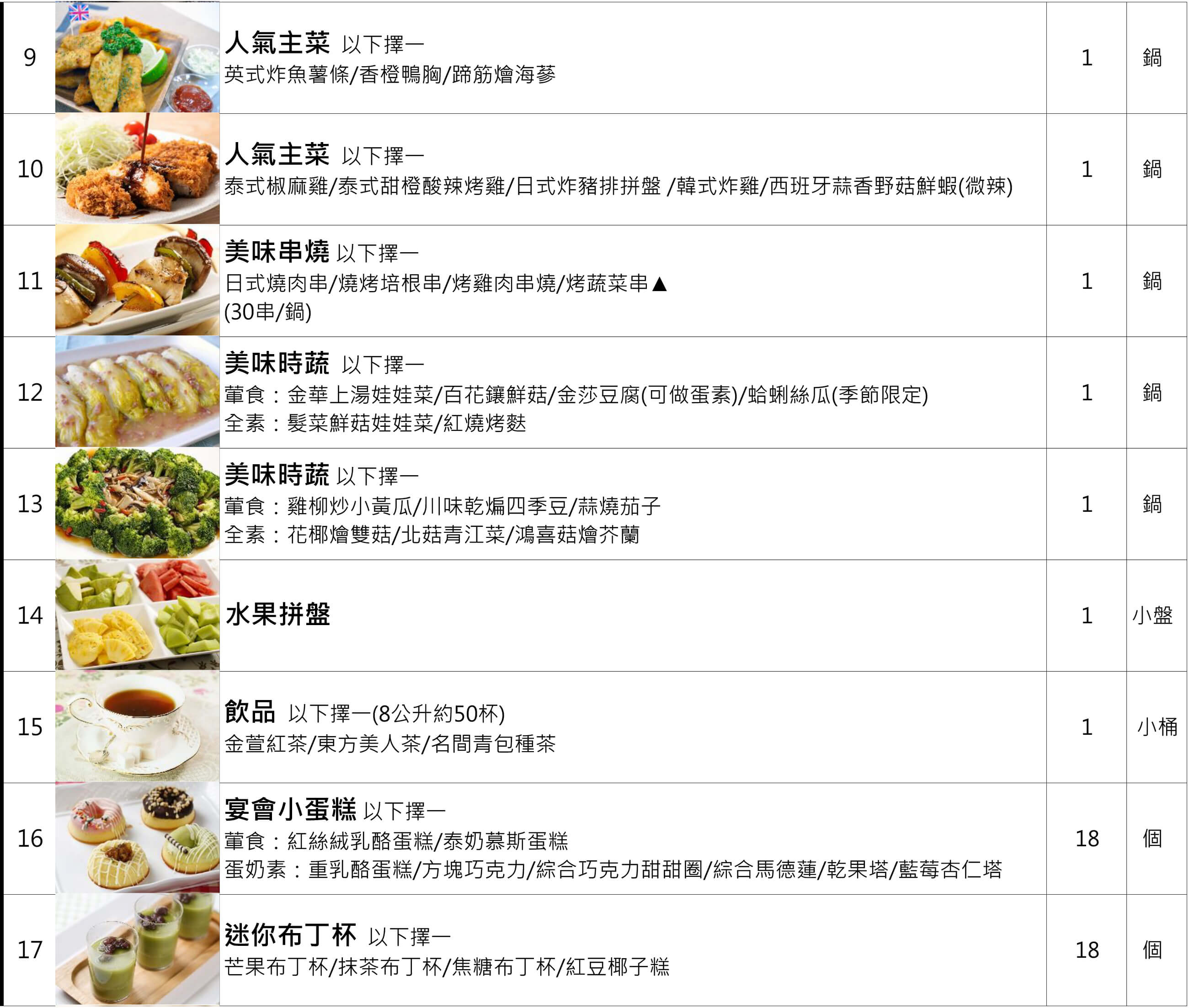 - 套餐內容不得更換,訂單送出後,規劃師將與您確認套餐中選項內容 《點我下載菜單》