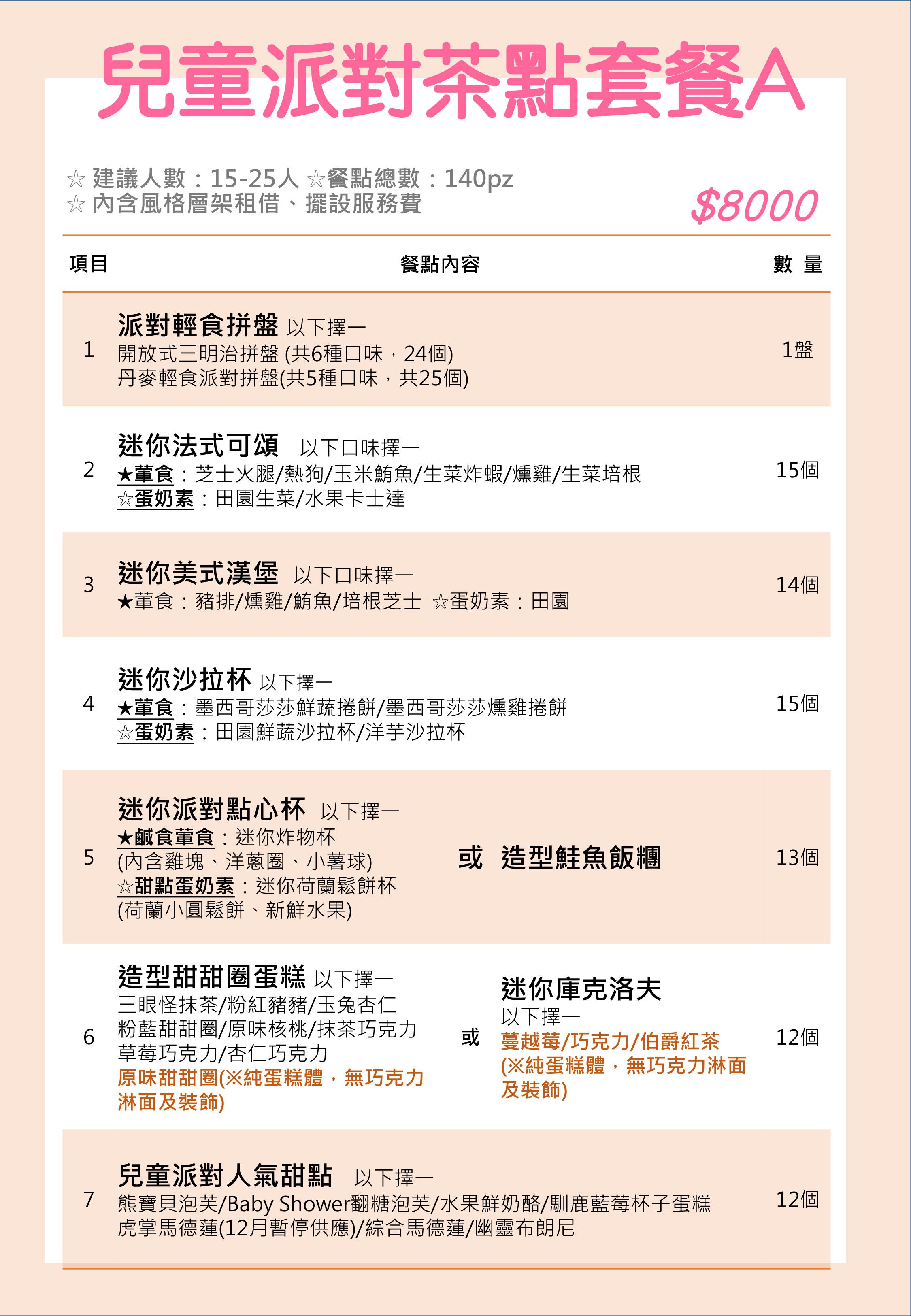 兒童派對茶會套餐A