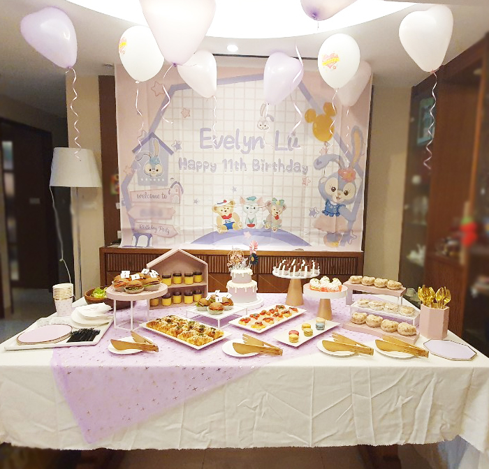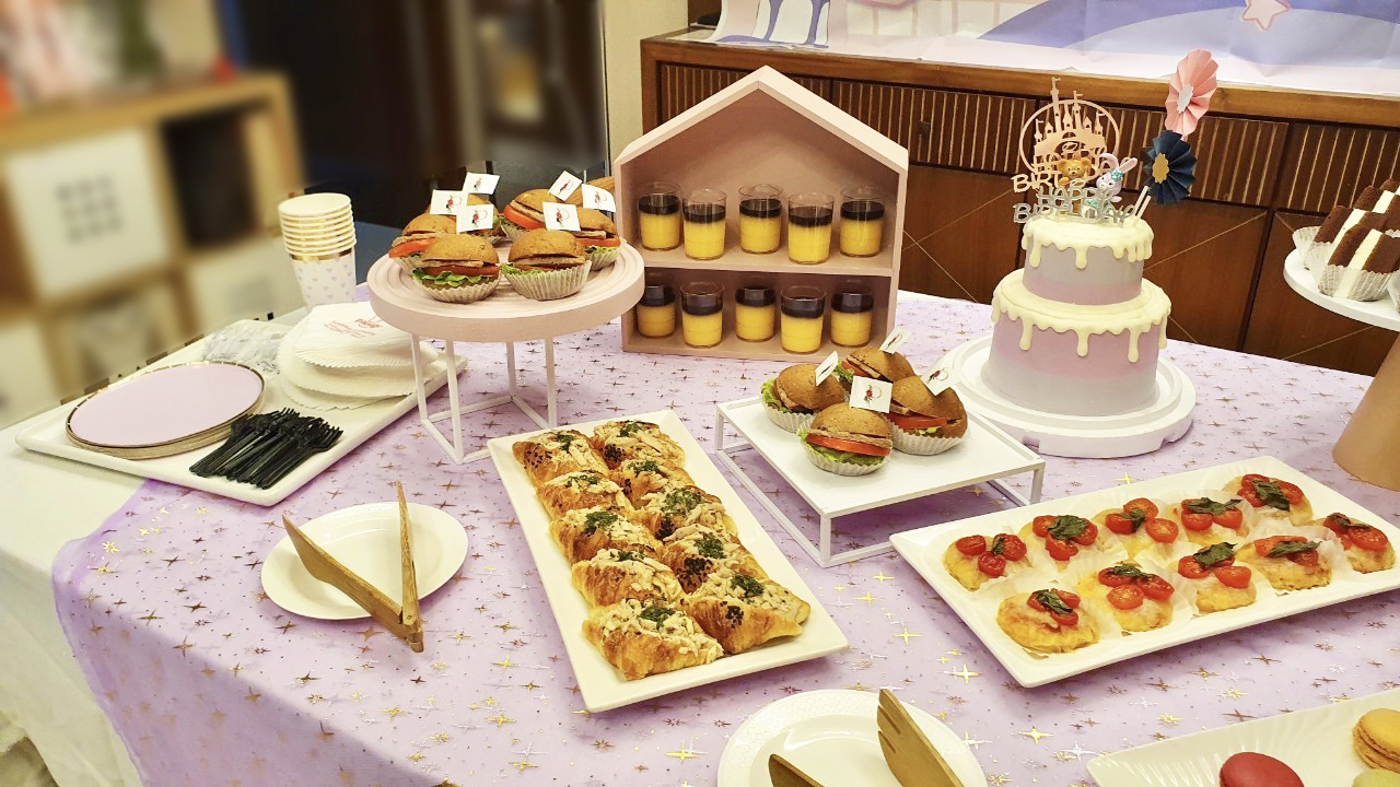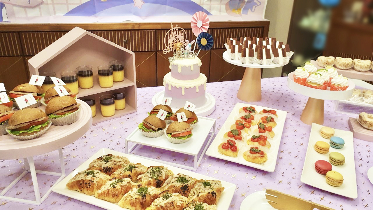(馬卡龍、生菜沙拉、派對背景輸出、氣球布置及派對個人餐具為客人另外準備)